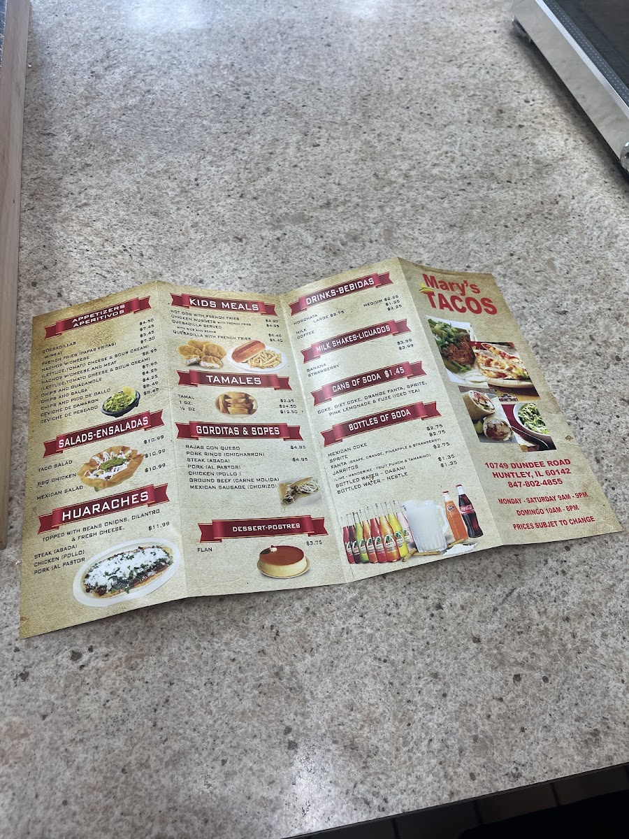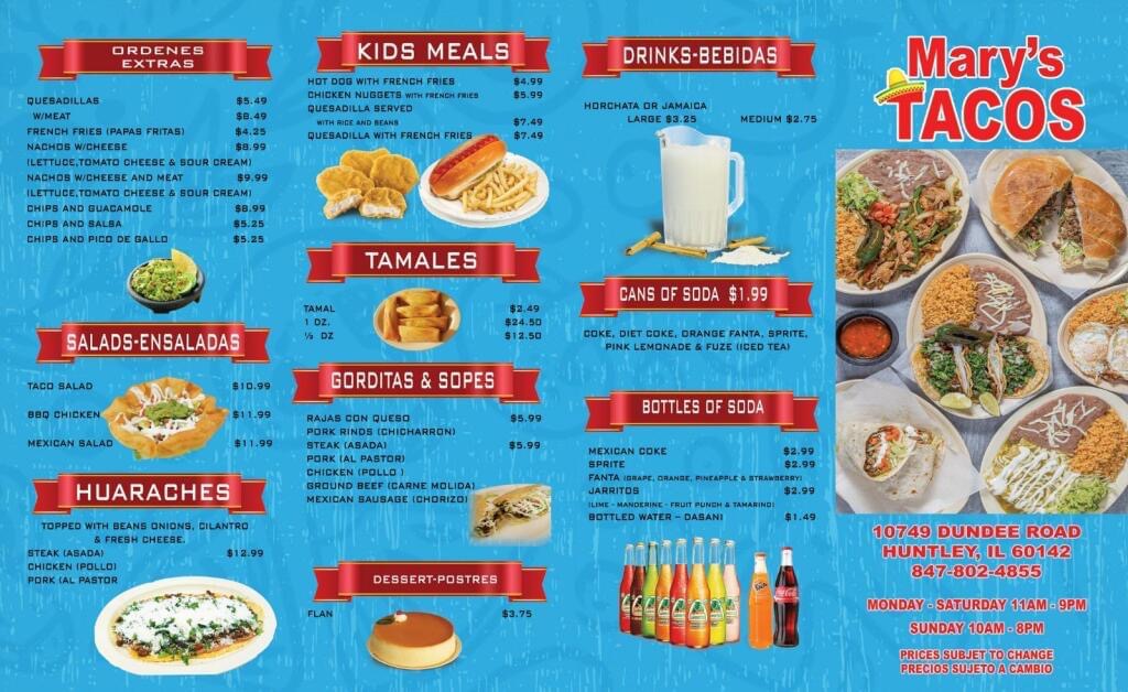 Toppings: Beans, Rice, Ground Beef, Lettuce, Tomato, Cheese, Sour Cream, Ketchup, Jalapeños & Avocado