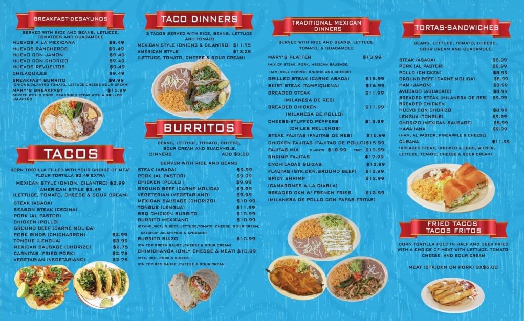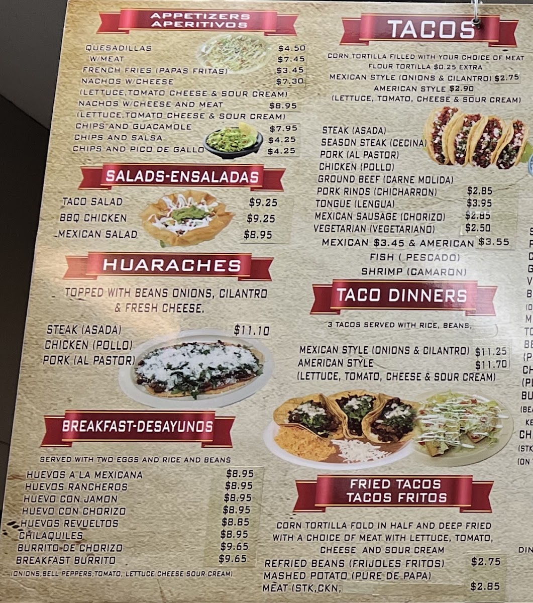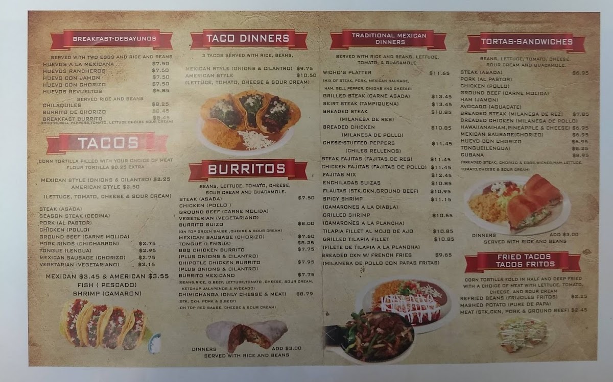 Toppings: Breaded Stk, Chorizo & Eggs, Sausage, Beans, Lettuce, Tomato, Cheese, Sour Cream, and Guacamole